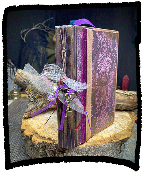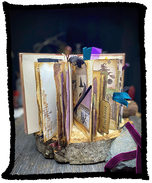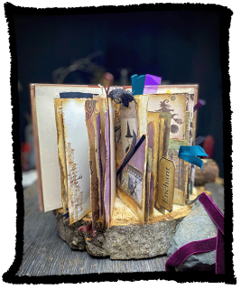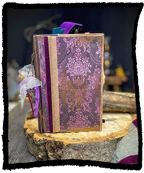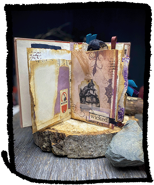 A messy , Witchy journal repurposed from a hard cover fairy tale book.